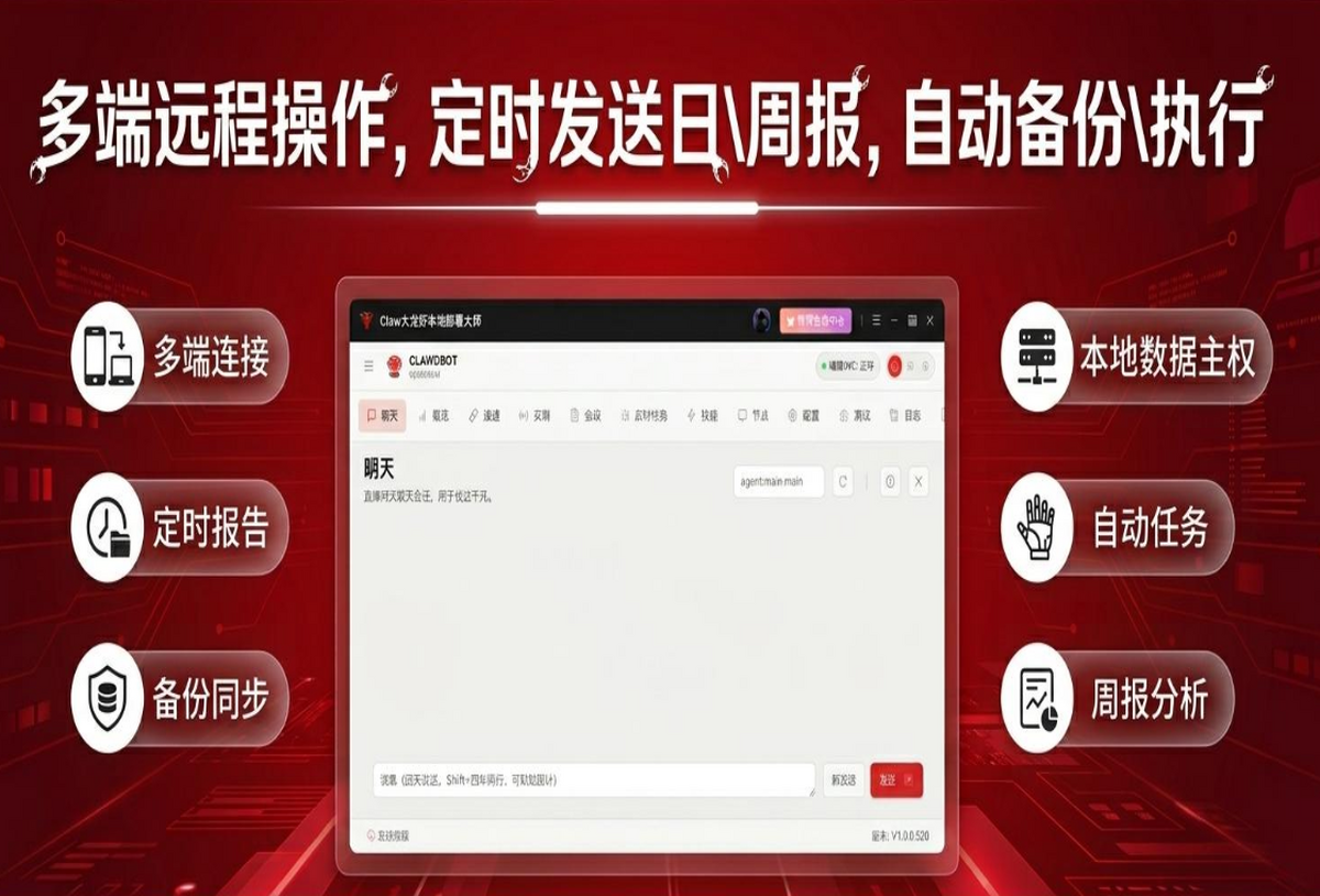安装好Claw大龙虾本地部署大师,可通过手机远程辅助控制电脑上的AI Agent,让您在不同地点都能获得AI助力,助力实现移动办公。